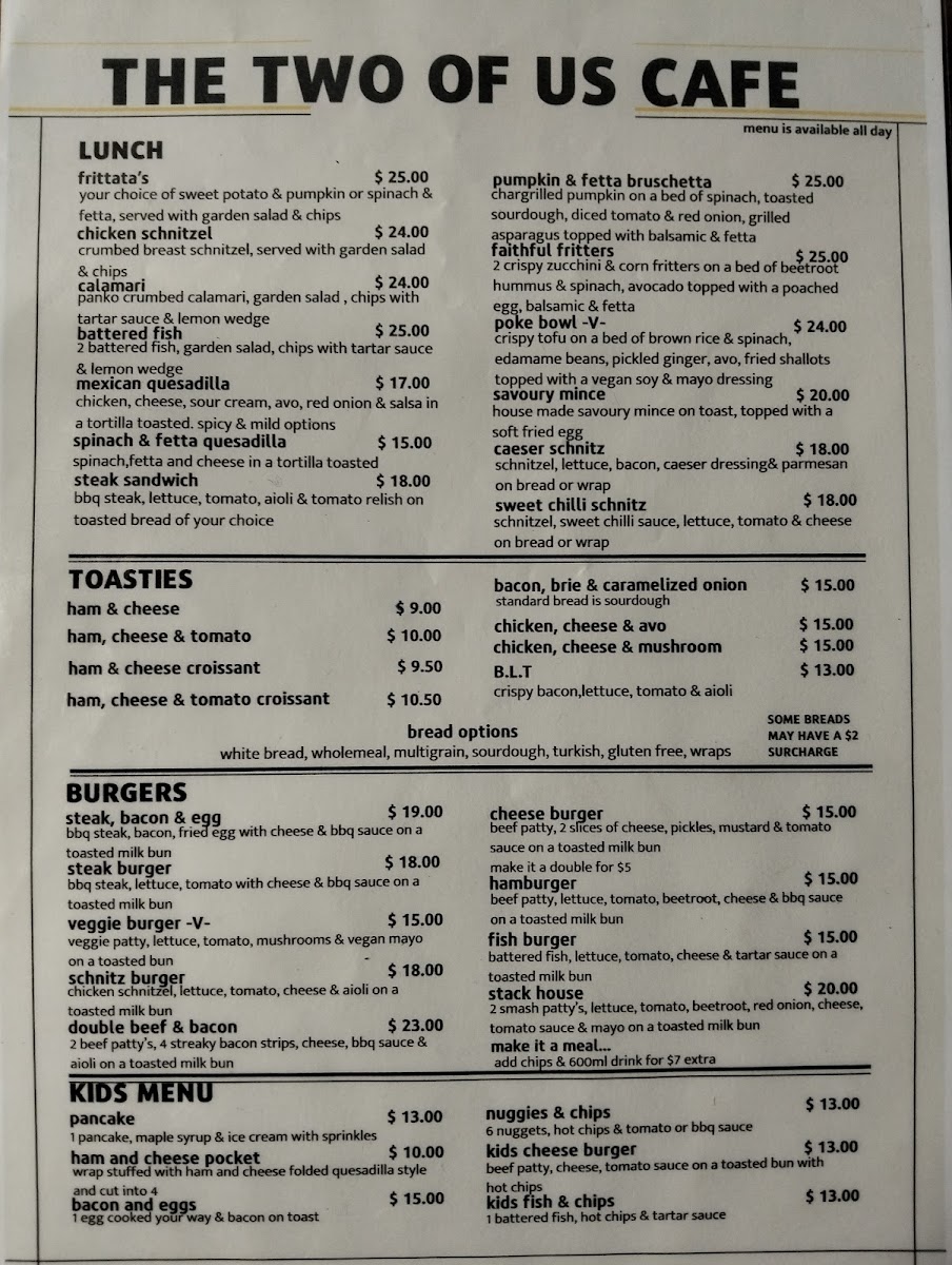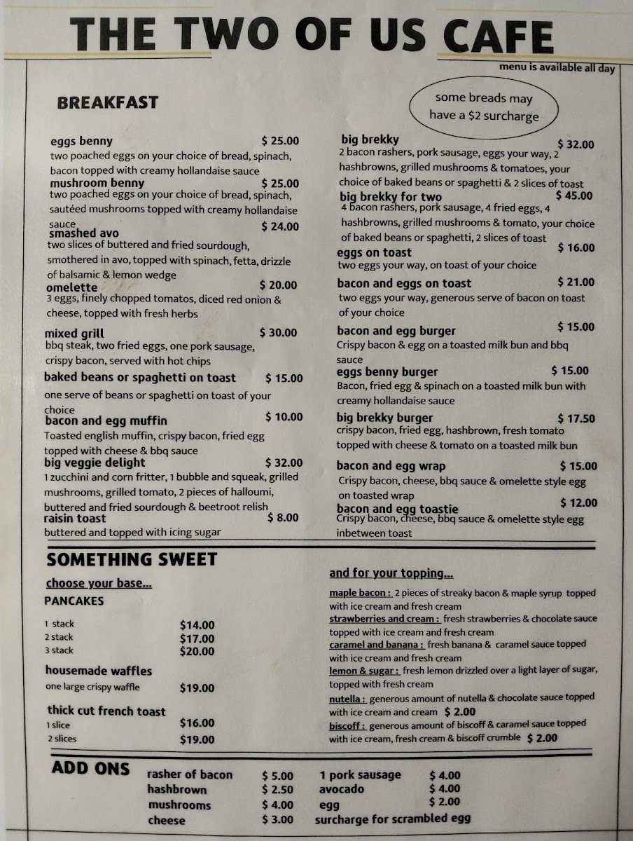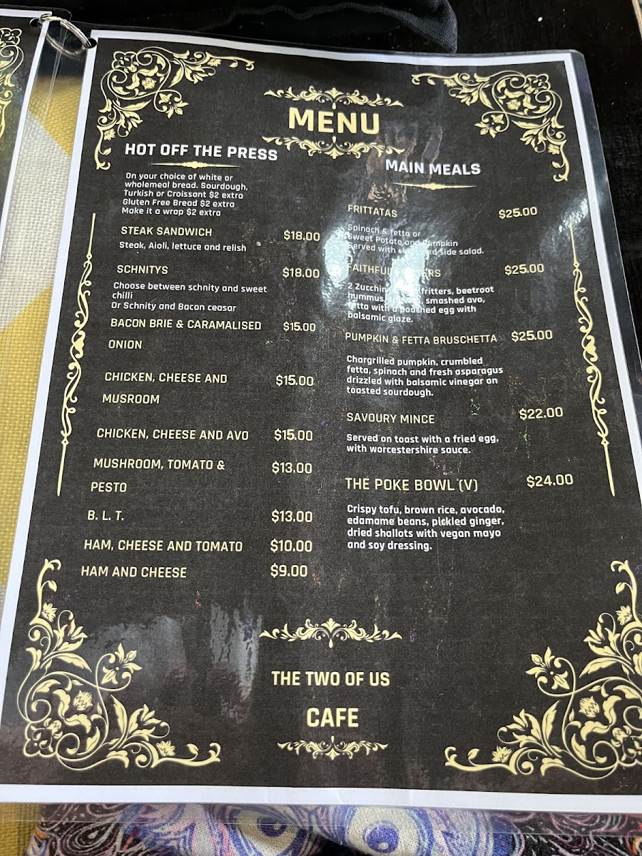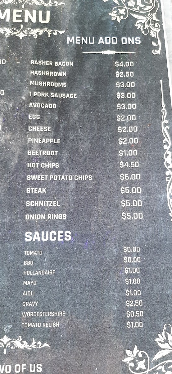 The Two Of Us Cafe Gympie Menu